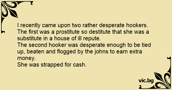 The first was a рrоsтiтuте so destitute that she was a substitute in a house of ill repute.