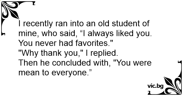 I recently ran into an old student of mine, who said, “I always liked you. You never had favorites."