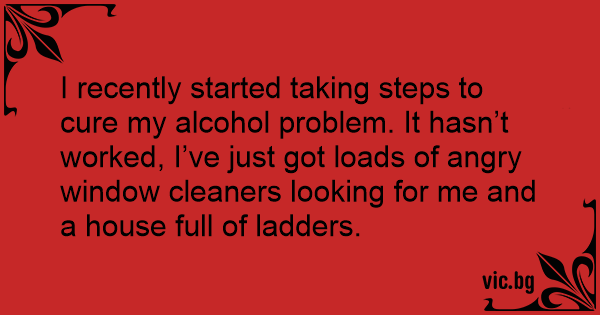 I recently started taking steps to cure my alcohol problem. It hasn’t worked, I’ve just got loads of angry window cleaners looking for me and a house full of ladders.