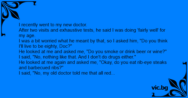 I was a bit worried what he meant by that, so I asked him, "Do you think I'll live to be eighty, Doc?"