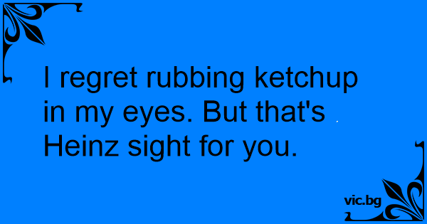 I regret rubbing ketchup in my eyes. But that's Heinz sight for you.