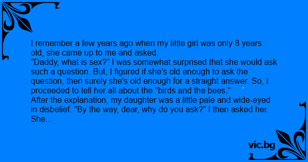 "Daddy, what is sеx?" I was somewhat surprised that she would ask such a question. But, I figured if she's old enough to ask the question, then surely she's old enough for a straight answer. So, I proceeded to tell her all about the "birds and the bees."