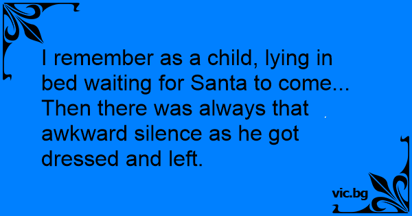 I remember as a child, lying in bed waiting for Santa to come... Then there was always that awkward silence as he got dressed and left.