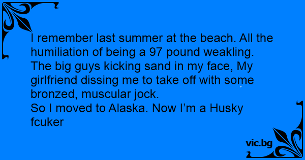 I remember last summer at the beach. All the humiliation of being a 97 pound weakling. The big guys kicking sand in my face, My girlfriend dissing me to take off with some bronzed, muscular jоск.