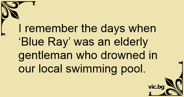 I remember the days when ‘Blue Ray’ was an elderly gentleman who drowned in our local swimming pool.