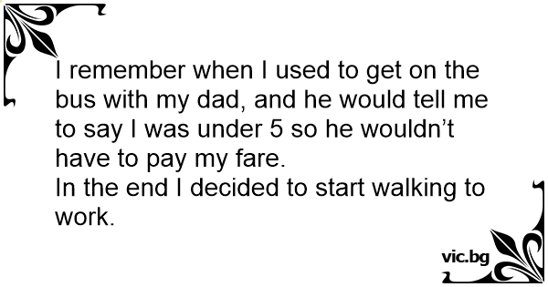 I remember when I used to get on the bus with my dad, and he would tell me to say I was under 5 so he wouldn’t have to pay my fare.