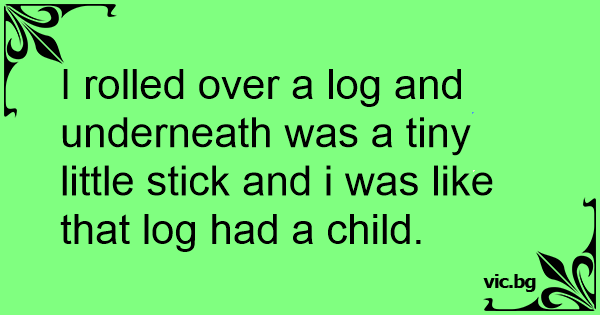 I rolled over a log and underneath was a tiny little stick and i was like that log had a child.