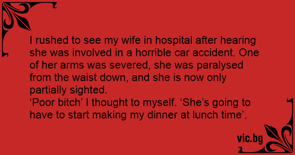 I rushed to see my wife in hospital after hearing she was involved in a horrible car accident. One of her arms was severed, she was paralysed from the waist down, and she is now only partially sighted.