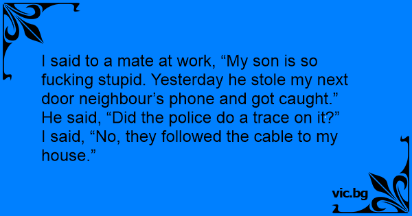 I said to a mate at work, “My son is so fuскing sтuрid. Yesterday he stole my next door neighbour’s phone and got caught.”