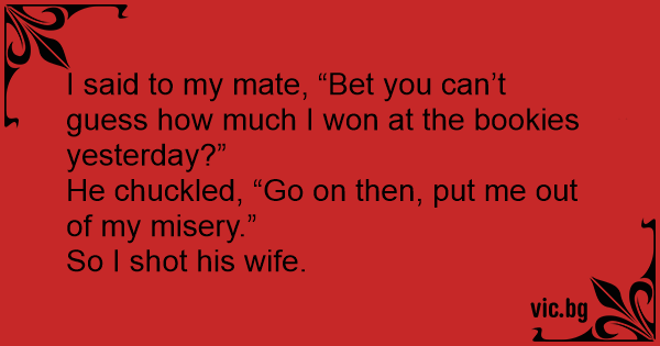 I said to my mate, “Bet you can’t guess how much I won at the bookies yesterday?”