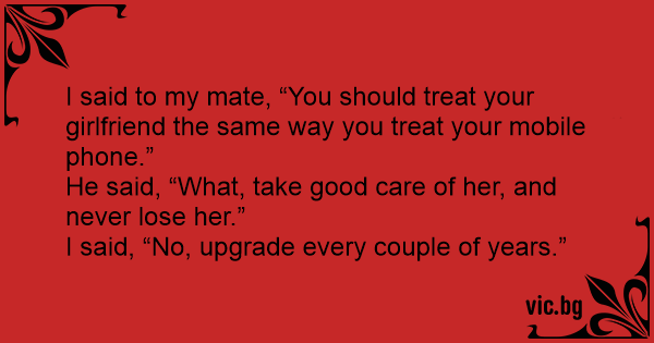 I said to my mate, “You should treat your girlfriend the same way you treat your mobile phone.”