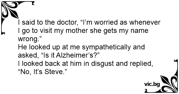 I said to the doctor, “I’m worried as whenever I go to visit my mother she gets my name wrong.”
