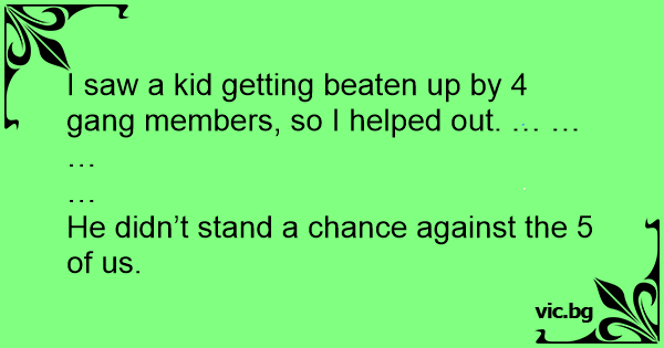I saw a kid getting beaten up by 4 gang members, so I helped out. … …