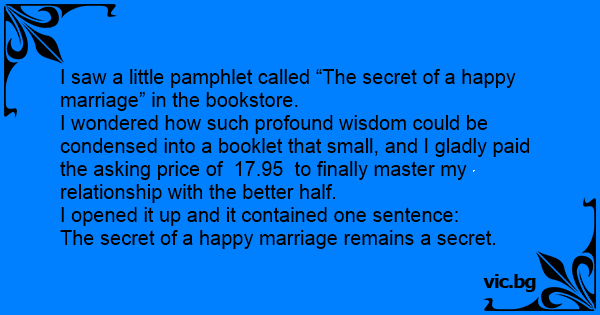 I saw a little pamphlet called “The secret of a happy marriage” in the bookstore.