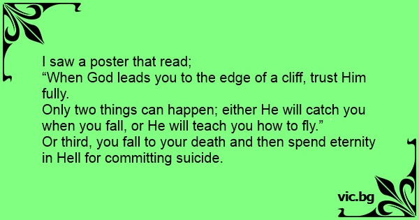 Or third, you fall to your death and then spend eternity in Неll for committing suicide.