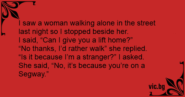 I saw a woman walking alone in the street last night so I stopped beside her.