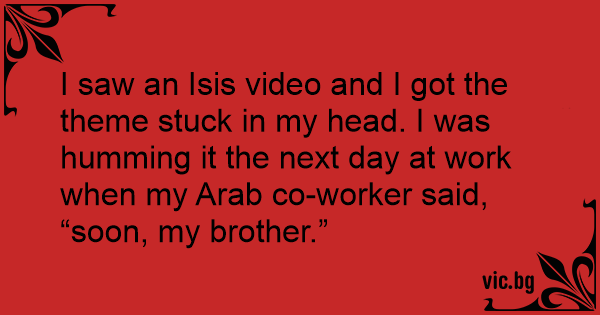 I saw an Isis video and I got the theme stuck in my head. I was humming it the next day at work when my Arab co-worker said, “soon, my brother.”