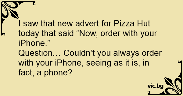 I saw that new advert for Pizza Hut today that said “Now, order with your iPhone.”
