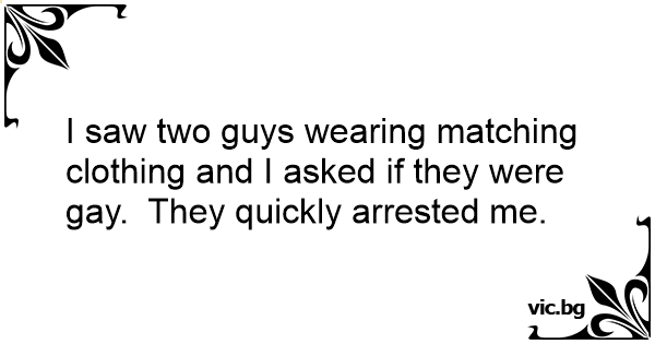 I saw two guys wearing matching clothing and I asked if they were gаy. They quickly arrested me.