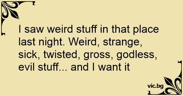 I saw weird stuff in that place last night. Weird, strange, sick, twisted, gross, godless, evil stuff... and I want it