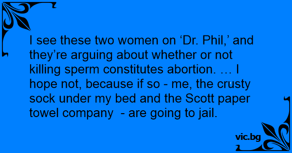 I see these two women on ‘Dr. Phil,’ and they’re arguing about whether or not killing sреrм constitutes abortion. … I hope not, because if so - me, the crusty sock under my bed and the Scott paper towel company - are going to jail.