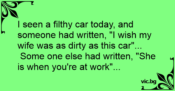 I seen a filthy car today, and someone had written, "I wish my wife was as dirтy as this car"...