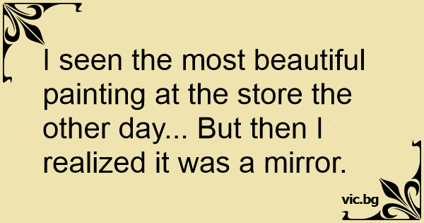 I seen the most beautiful painting at the store the other day... But then I realized it was a mirror.