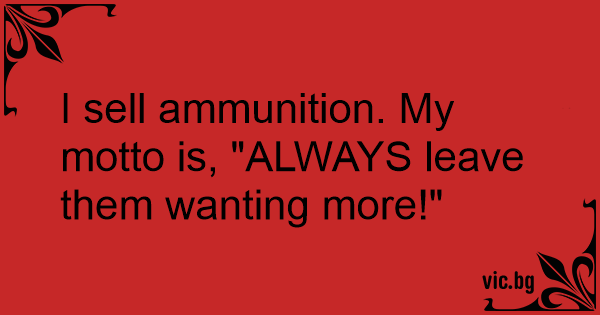 I sell ammunition. My motto is, "ALWAYS leave them wanting more!"