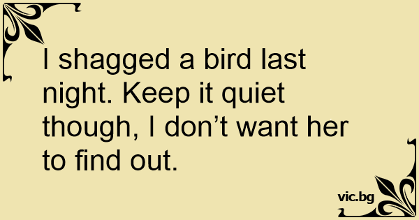 I shagged a bird last night. Keep it quiet though, I don’t want her to find out.