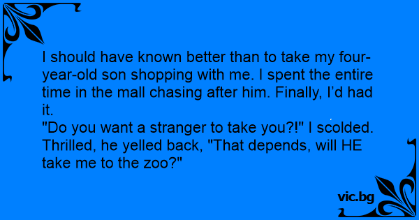 I should have known better than to take my four-year-old son shopping with me. I spent the entire time in the mall chasing after him. Finally, I’d had it.