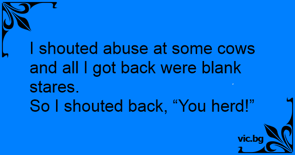 I shouted abuse at some cows and all I got back were blank stares. So I shouted back, “You herd!”