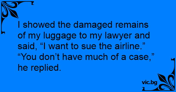 I showed the damaged remains of my luggage to my lawyer and said, “I want to sue the airline.”