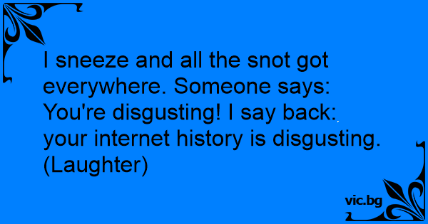 I sneeze and all the snot got everywhere. Someone says: You're disgusting! I say back: your internet history is disgusting. (Laughter)