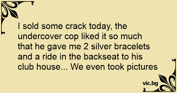 I sold some сrаск today, the undercover cop liked it so much that he gave me 2 silver bracelets and a ride in the backseat to his club house... We even took pictures