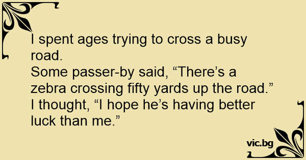 Some passer-by said, “There’s a zebra crossing fifty yards up the road.”