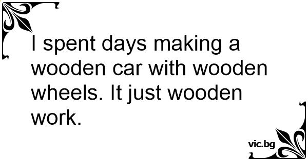 I spent days making a wooden car with wooden wheels. It just wooden work.