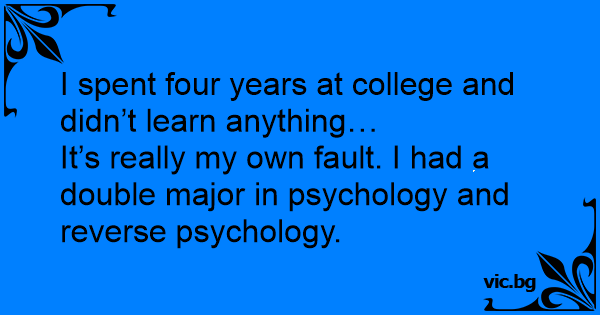 It’s really my own fault. I had a double major in psychology and reverse psychology.