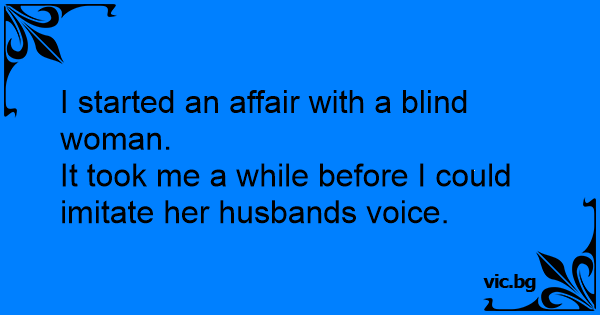 I started an affair with a blind woman.<br />It took me a while before I could imitate her husbands voice.