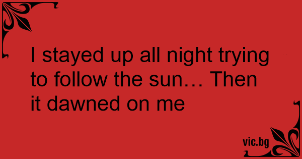 I stayed up all night trying to follow the sun… Then it dawned on me