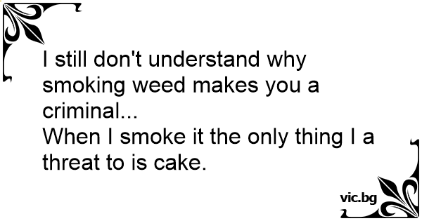 I still don't understand why smoking wееd makes you a criminal...<br />When I smoke it the only thing I a threat to is cake.