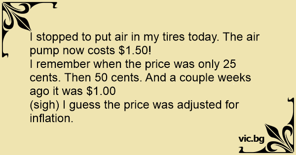 I stopped to put air in my tires today. The air pump now costs $1.50!