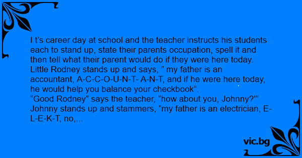 Little Rodney stands up and says, ” my father is an accountant, A-C-C-O-U-N-T- A-N-T, and if he were here today, he would help you balance your checkbook”.