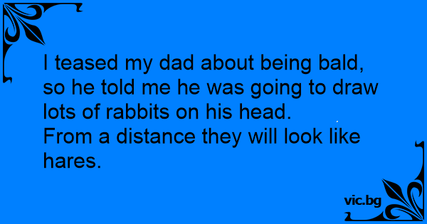 I teased my dad about being bald, so he told me he was going to draw lots of rabbits on his head.