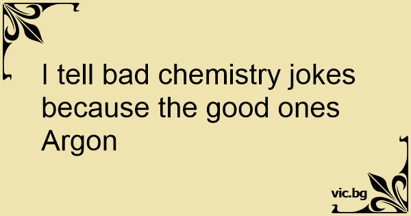 I tell bad chemistry jokes because the good ones