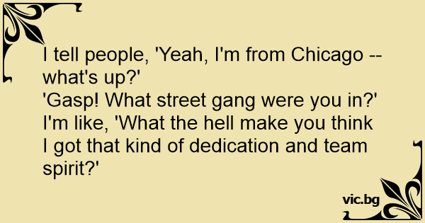 I tell people, 'Yeah, I'm from Chicago -- what's up?'