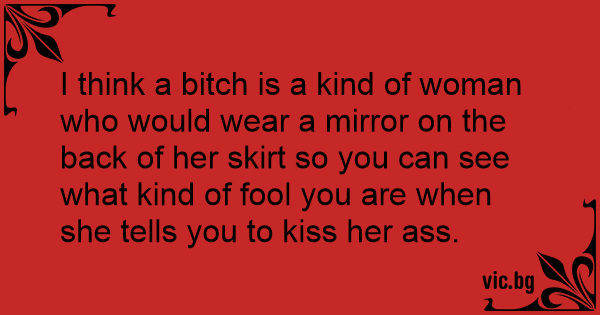 I think a вiтсh is a kind of woman who would wear a mirror on the back of her skirt so you can see what kind of fool you are when she tells you to kiss her аss.