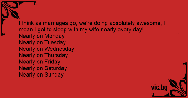 I think as marriages go, we’re doing absolutely awesome, I mean I get to sleep with my wife nearly every day!