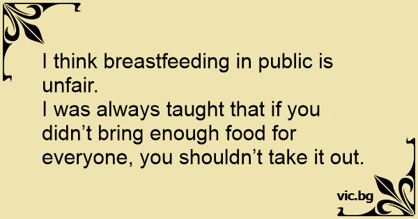 I think breastfeeding in public is unfair. I was always taught that if you didn’t bring enough food for everyone, you shouldn’t take it out.