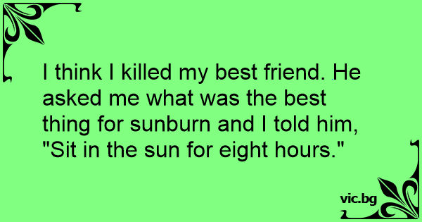 I think I killed my best friend. He asked me what was the best thing for sunburn and I told him, "Sit in the sun for eight hours."