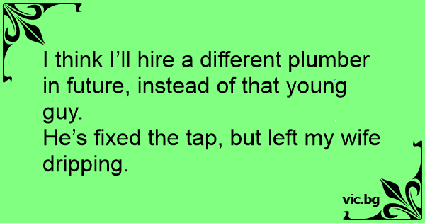I think I’ll hire a different plumber in future, instead of that young guy.<br />He’s fixed the tap, but left my wife dripping.